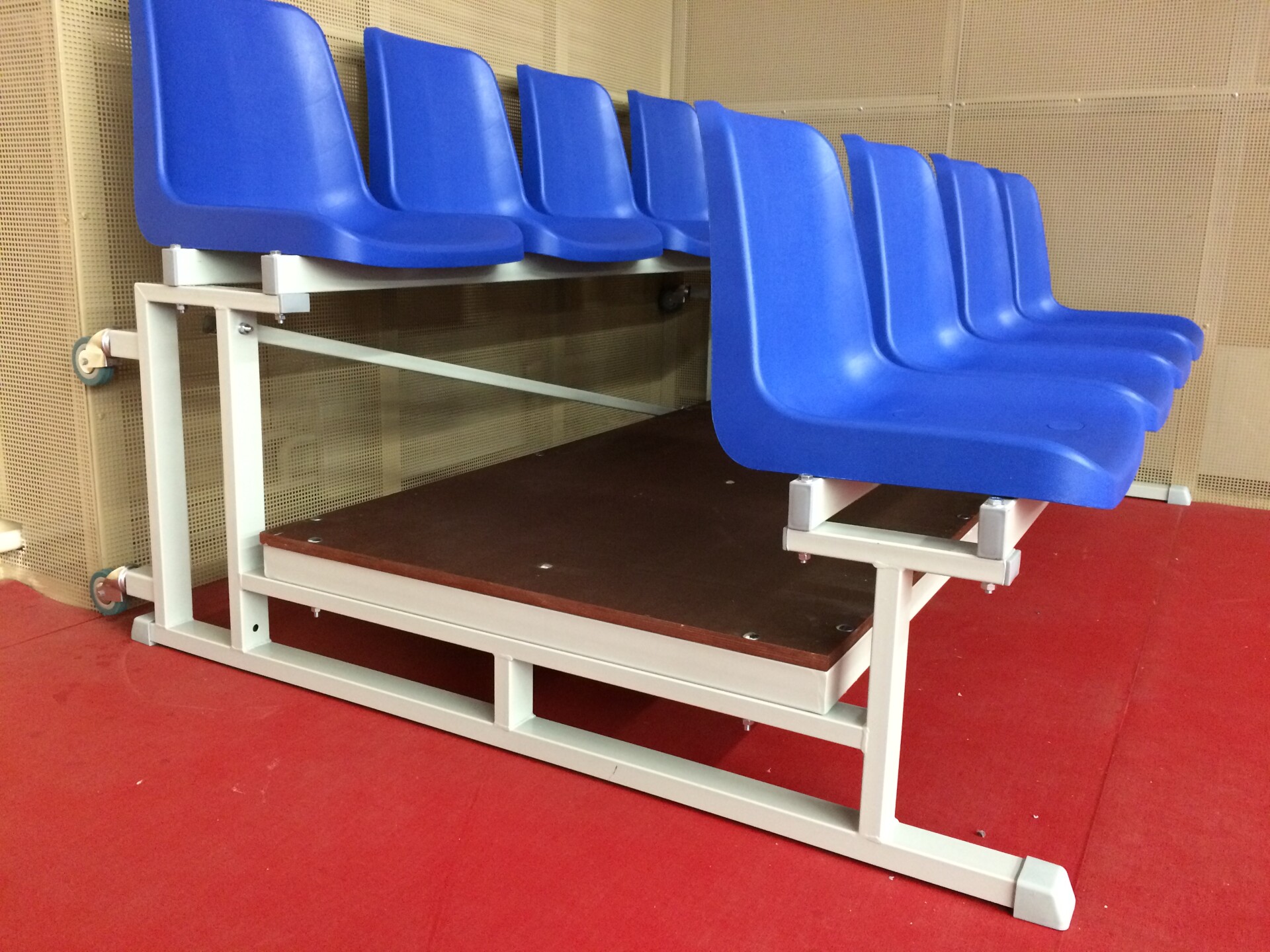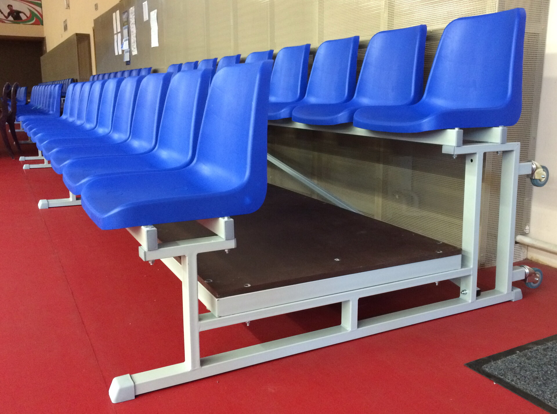 Для оборудования спортивного зала одной из крупнейших компаний занимающейся строительством трубопроводов, были изготовлены мобильные трибуны с индивидуальными пластиковыми сиденьями.
