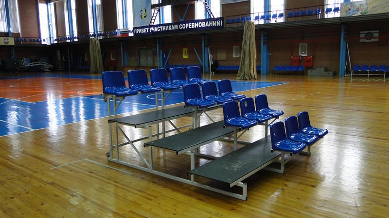 Комплект трибун по 10 мест установлен в одном из гимнастических залов детской спортивной школы "Ласточка". Их используют как дополнительные сидячие места для просмотра выступлений во время соревнований.