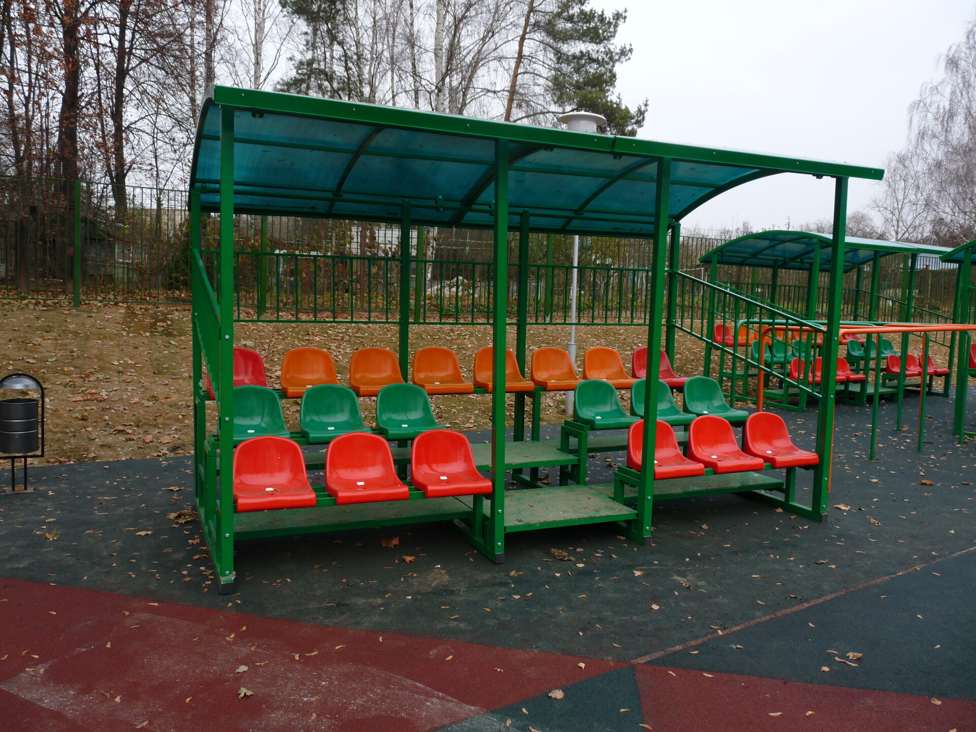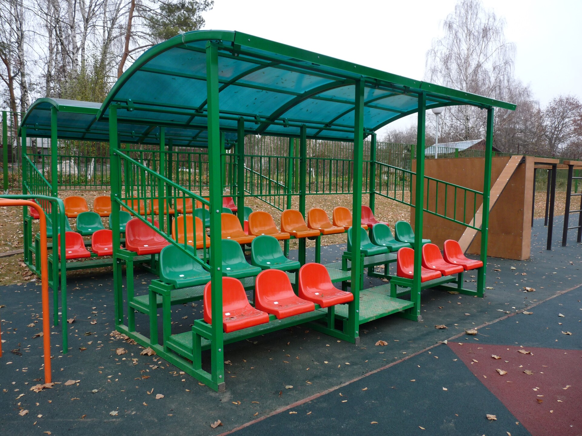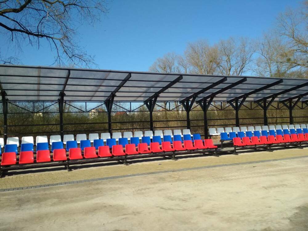 Две трибуны с навесом были изготовлены для школьной спортивной площадки.