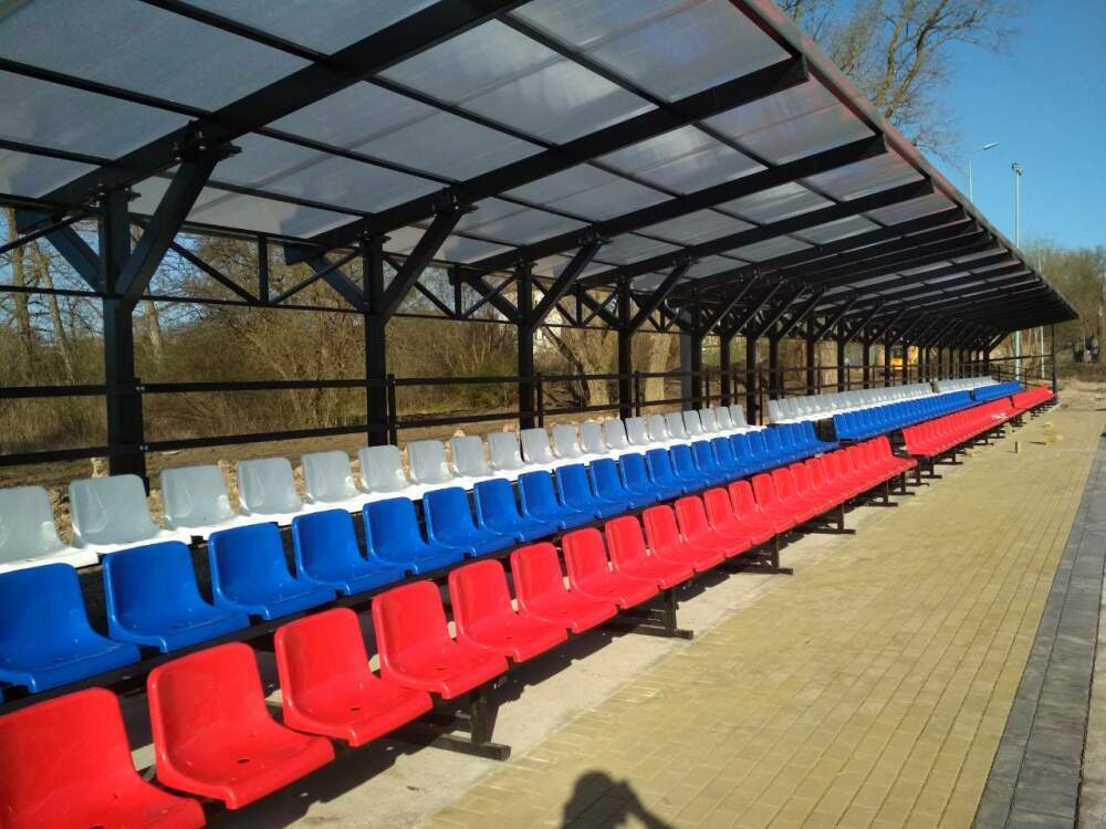 Трибуна сделана из квадратного профиля и покрыта порошковой краской. Такое покрытие гарантирует долговечность конструкции, за счет препятствия образования ржавчины. Яркие пластиковые сиденья "Лужники", прослужат долгие годы, так как являются ударопрочными и устойчивыми к выгоранию.