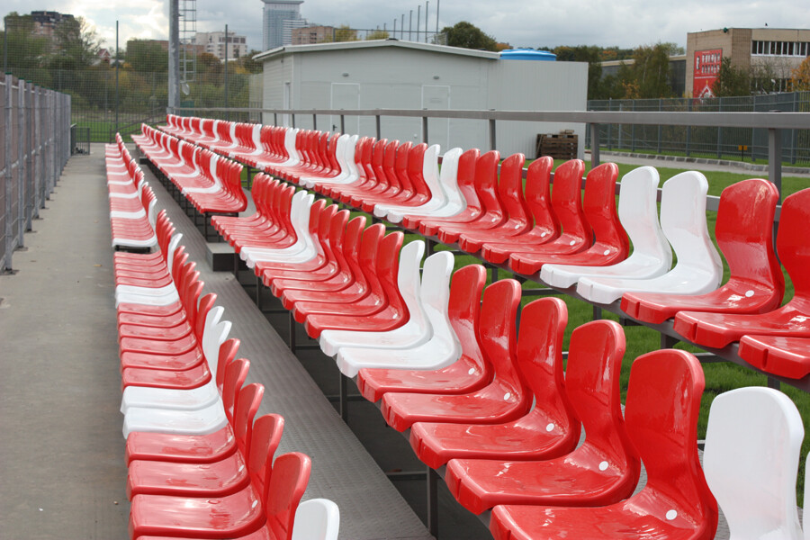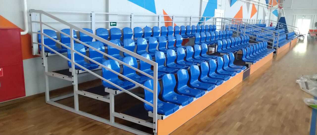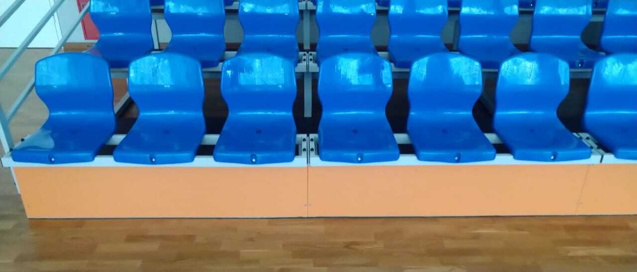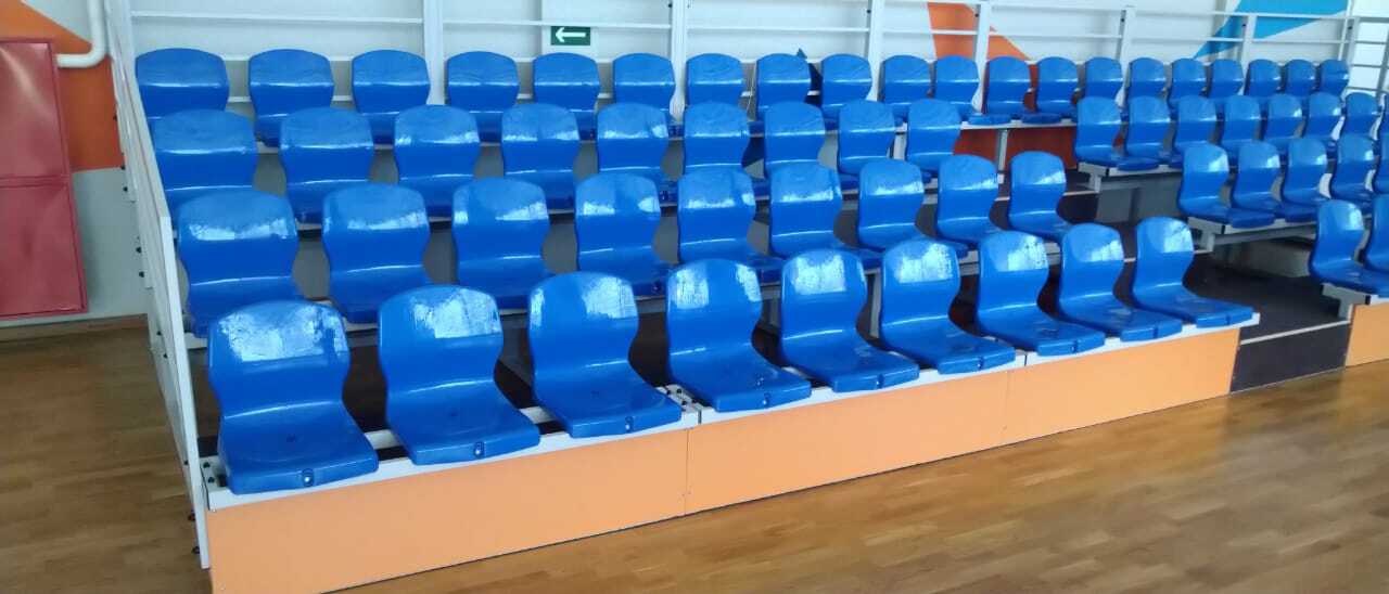 Учитывая установку в закрытом помещении, было решено использовать трудновоспламеняемые пластиковые сиденья. Они не уступают по качеству популярным сидениям из пластика и в полной мере отвечают всем требованиям пожарной безопасности, предъявляемые к спортивным залам.
